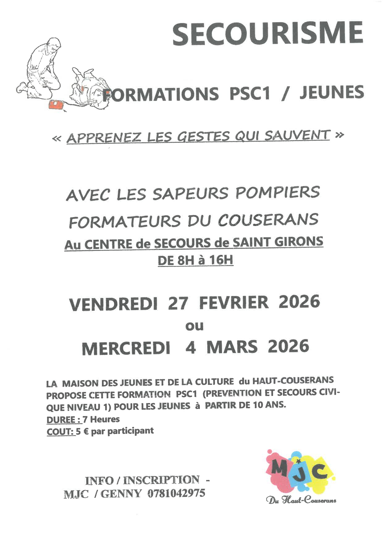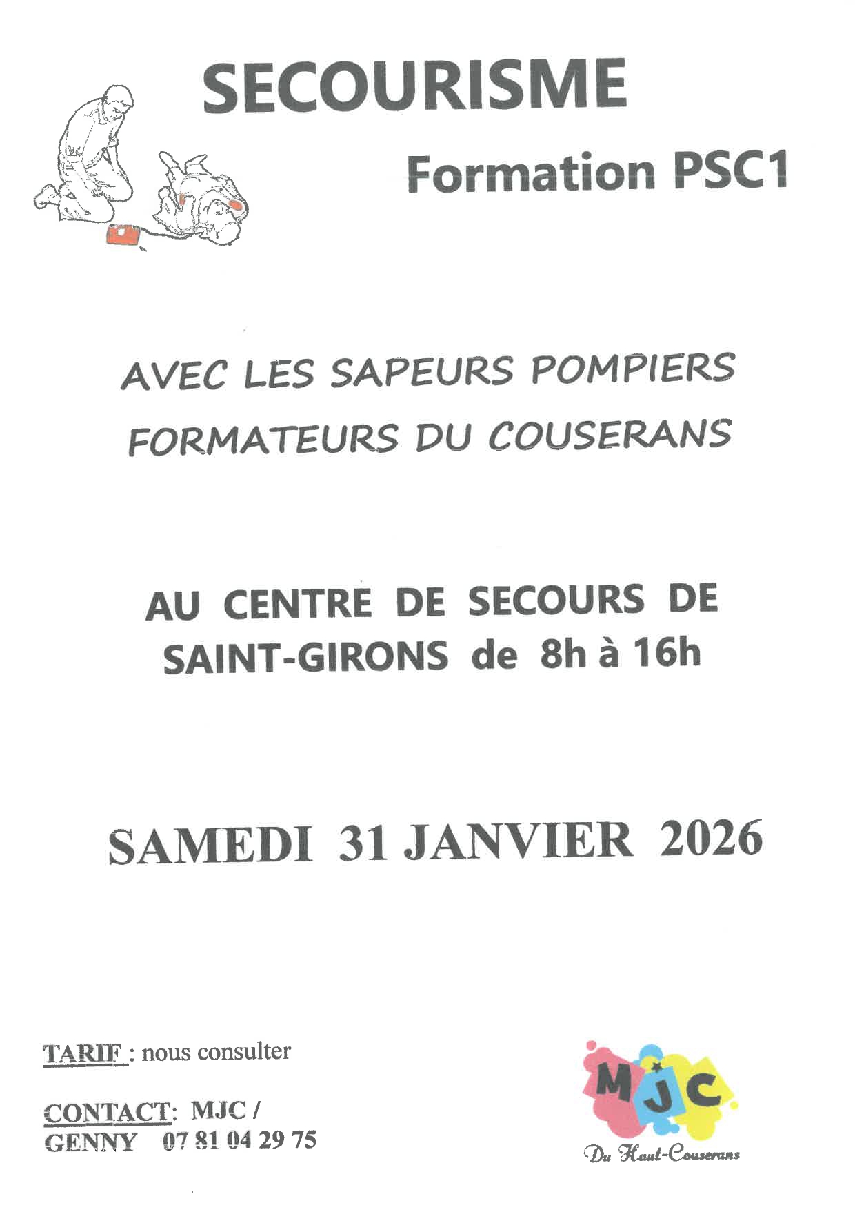 Formation secourisme PSC1/adultes et Jeunes - MJC du Haut-Salat