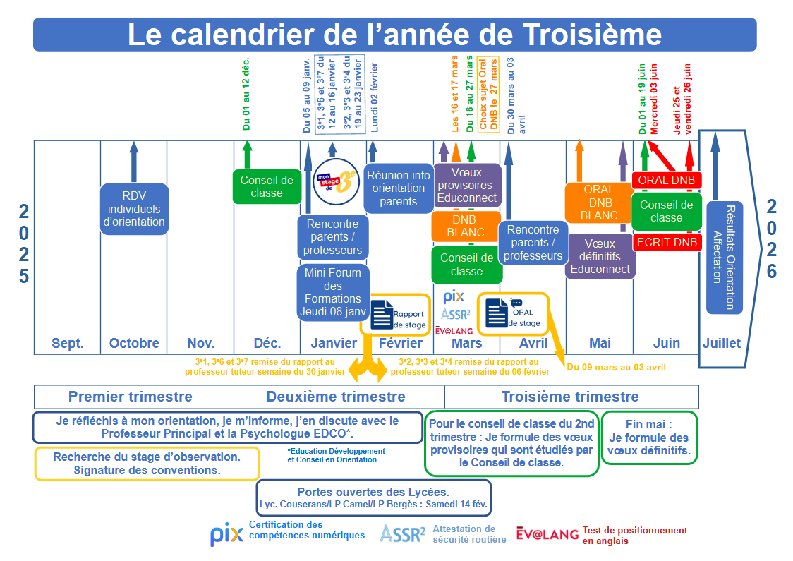 Calendrier de l'année de troisième